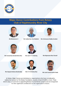 Major Donor Contributions From Rotary Club of Rajahmundry River City